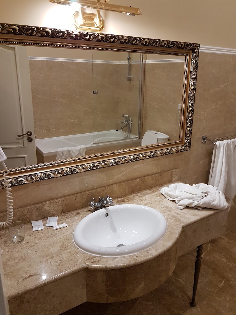 Навіть при наявності всіх недоліків загальне враження позитивне. Відвалились шматки плитки в оздобленні умивальника - добре що не на ногу. Погано працювало кондиціювання - добре що на дворі не жарко було. Телевізор в номері показує лише ефірне телебачення, але добре що взяли з собою ноутбук та кабель HDMI - дивились кіно ОНЛАЙН через готельний вайфай. Попросили в номер холодильник - дали невеличкий, який зламався на третій день. На прохання до адміністрації виправити ситуацію отримали відповідь, що наш номер взагалі не передбачає холодильник, хоча ми жили у покращеному номері в корпусі Гранд Роял. Коли заїхали в номер - погано уходила вода з умивальника. Залишили заявку адміністратору - без реакції 3 дні. Сказали персоналу який прибирав номера - виправили протягом 15 хвилин. Харчування - це окрема історія. Кожен раз доводиться витрачати від 15 до 40 хвилин у чергах. Спочатку стоїш у загальній черзі за основними стравами. Зранку окрема довга черга за млинцями та яєшнею, бо їх готовлять безпосередньо у час приймання їжі, прям у залі. За кавою теж довго стоїш, бо рідко коли працюють три кавомашини одночасно, частіше лише дві, або взагалі одна. Їжа звичайна, нічого особливого, але НІКОЛИ НЕ БЕРІТЬ РИБНІ КОТЛЕТИ, ТЕФТЕЛІ, РУЛЕТИ, СМАЖЕНУ РИБУ В КЛЯРІ - ВОНИ ПРОСТО ЖАХЛИВІ!!! Тушена скумбрія - норм. Якщо прийти пізніше - є ризик не отримати щось смачненьке - закінчиться. Напої компоти, каркаде - на любителя, чай дуже дешевий, краще прийти зі своїм пакетиком а в столовій набрати лише окропу. Приємні враження були лише від СПА центру, відвідування якого теж входило у вартість путьовки. Балкони номерів 3002 та 3003 виходять на кришу великого балкона на 2-му поверсі, на цю кришу періодично прилітали ворони, які не нехтували нашими смаколиками, та дозволяли їх годувати. Це було як окрема розвага під час відпочинку, яка додала багато позитивних емоцій.